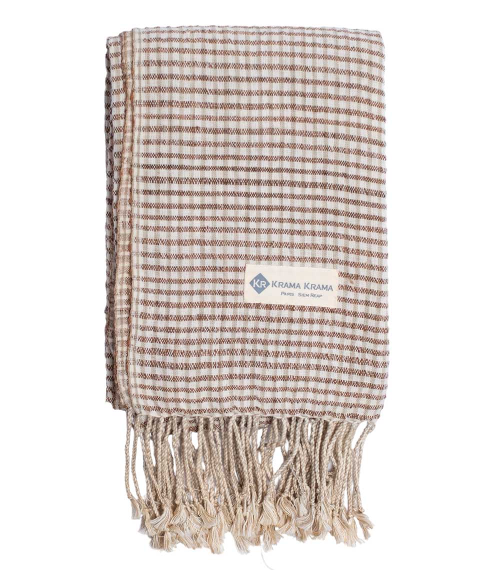 Dieses wunderschöne kambodschanische Schal, das aus 75% Baumwolle und 25% Seide mit völlig natürlichen Farbstoffen besteht, wird Sie mit seinen sanften Kupfernoten in Staunen versetzen und mit seiner seidigen Weichheit verzaubern. Das 1. Krama-Modell aus Seide + Baumwolle auf Krama Krama, das Sie dringend adoptieren sollten!